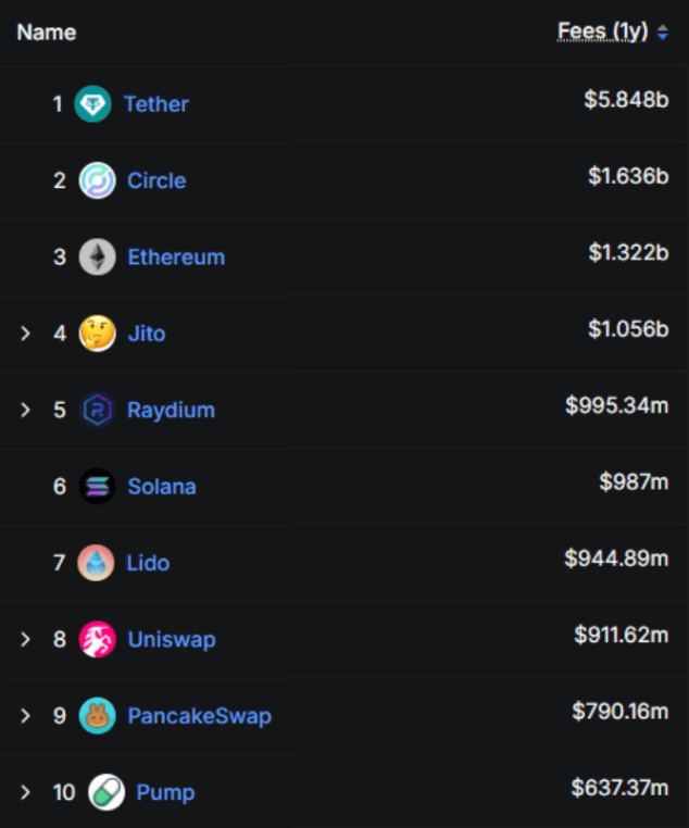 What’s even more telling is that three Solana-native applications — Jito, Raydium and Pump — also feature in the top 10 revenue-generating crypto projects over the same period. So not only is Solana itself generating significant fees, but the apps built exclusively on the network are doing the same. It’s a clear sign of a thriving, self-sustaining ecosystem.