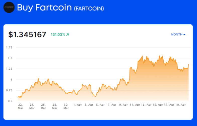 Fartcoin price has surged 130% in April, demonstrating appetite for risky memecoins still exists.