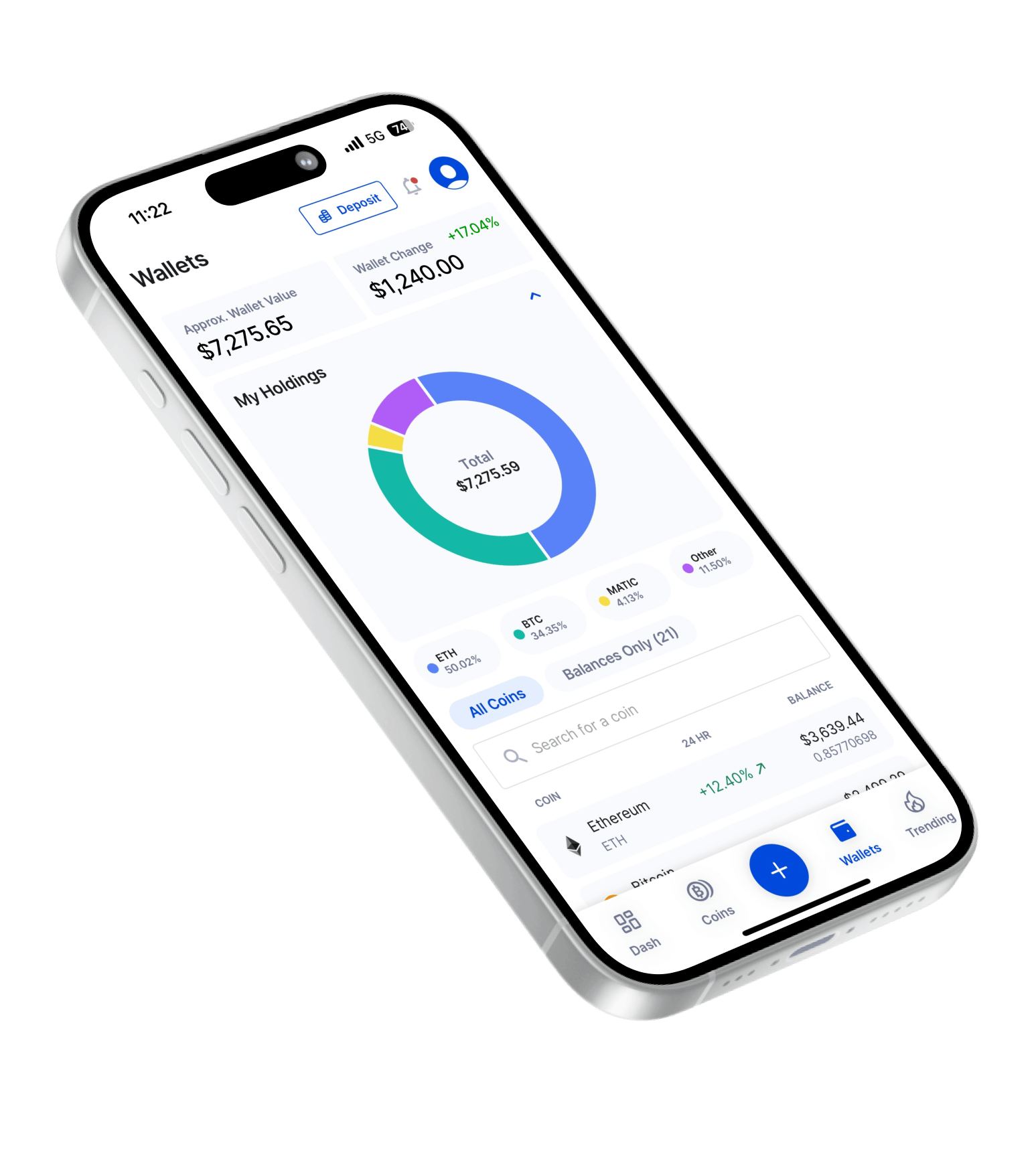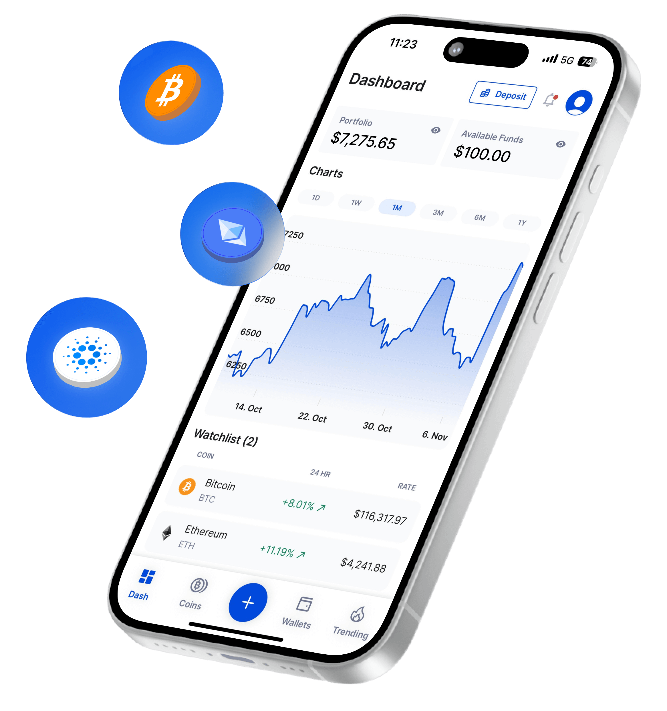 Stay on top of the market with our interactive coin list—swipe to track all coins, top gainers, and biggest losers over the past 24 hours. Tap any coin to view easy-to-read charts with daily, weekly, monthly, and yearly trends.
