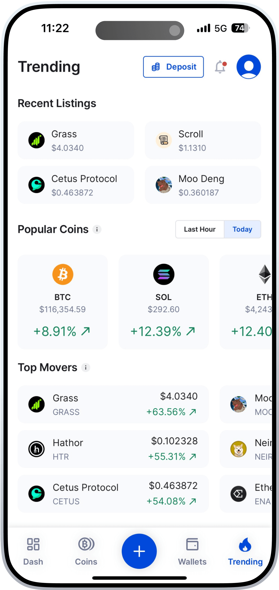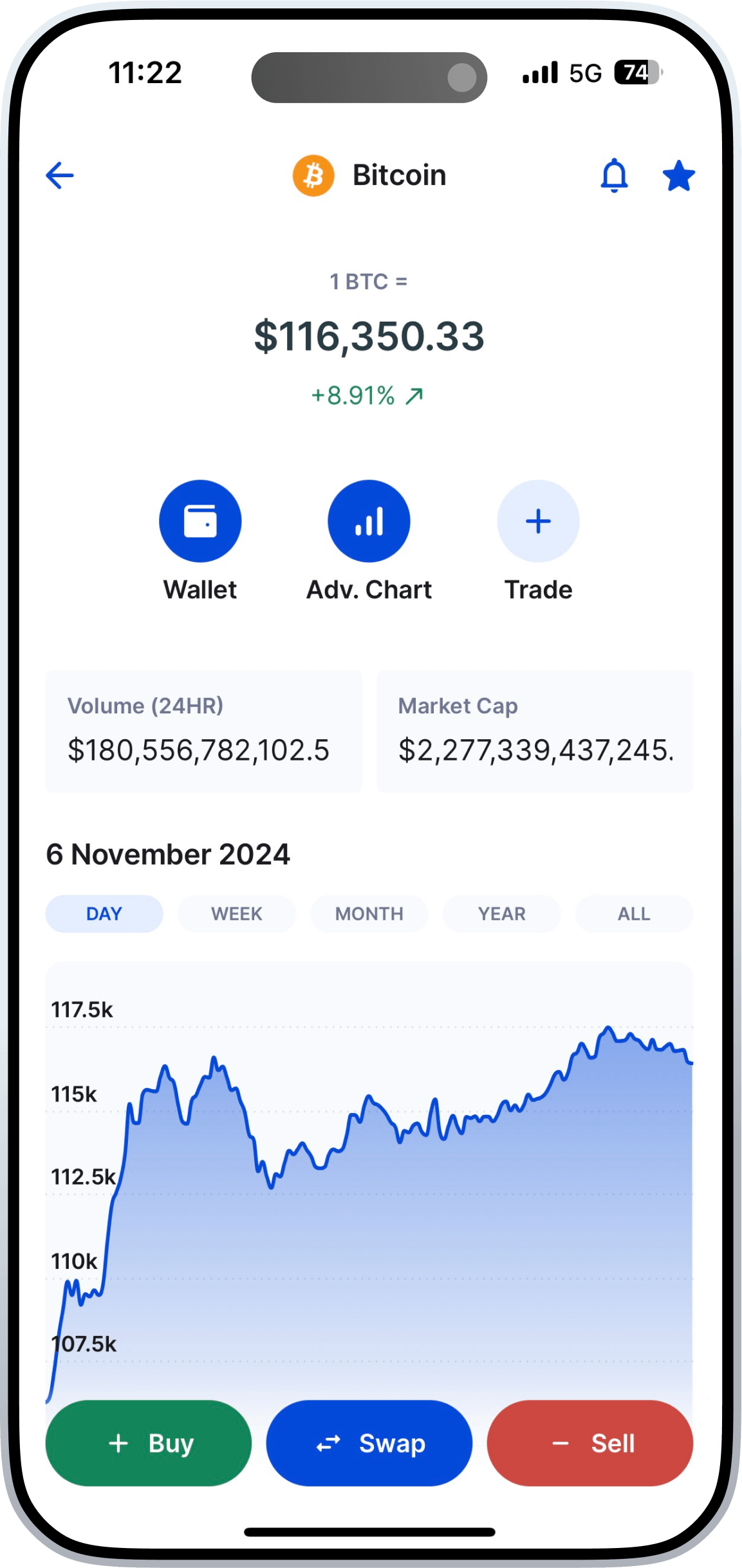 Stay on top of the market with our interactive coin list—swipe to track all coins, top gainers, and biggest losers over the past 24 hours. Tap any coin to view easy-to-read charts with daily, weekly, monthly, and yearly trends.