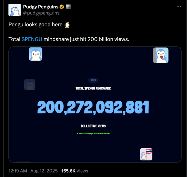 Pengu Mindshare over 200 billion views